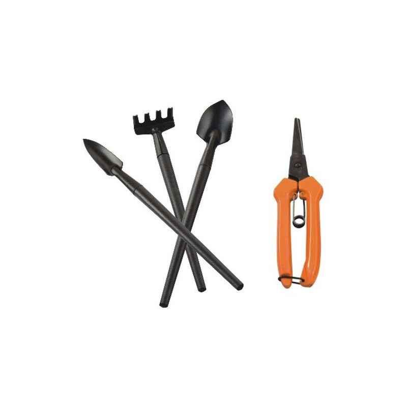 - Bonsai rake, bonsai small trowel, bonsai big trowel and Bonsai Scissors